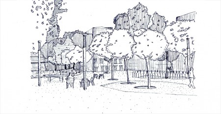 Ilustración en tinta de la Plaza del Poeta Boscá.